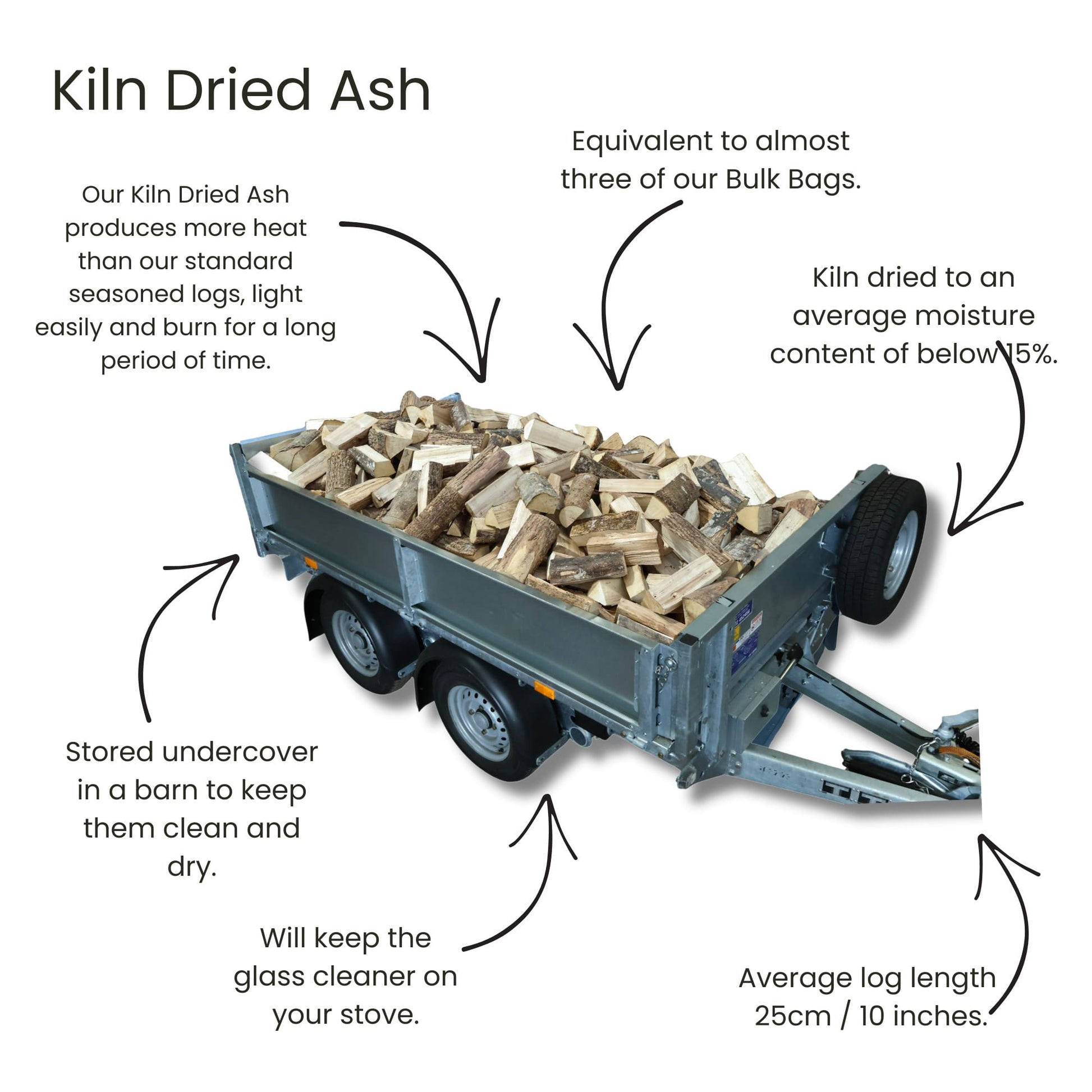 The kiln dried ash logs are the most superior logs in the Black Country Firewood “Premium Range” and best performing logs in the whole collection. They are kiln dried to give the best burning performance. The logs burn efficiently and cleanly with little soot or smoke.
